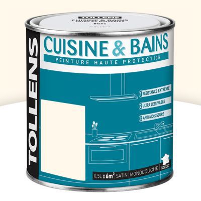 Peinture cuisine et salle de bains Tollens blanc cassé satin 0,5L | Castorama