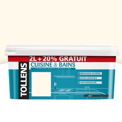 Peinture cuisine et salle de bains Tollens blanc cassé satin 2L + 20% | Castorama