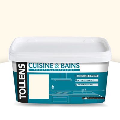 Peinture Tollens Cuisine/SDB murs, plafonds et boiseries blanc cassé satin 2L | Castorama